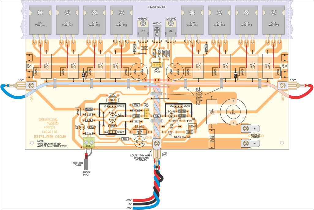 Saya lupa di website apa saya mendapatkan layout dan PCB amplifier ini, karena sdh ada dilaptop saya sejak lama. Untuk yg membutuhkan amplifier berdaya besar dgn design yg kompak dan simple saya rasa ini bisa jadi pilihan yg menarik.