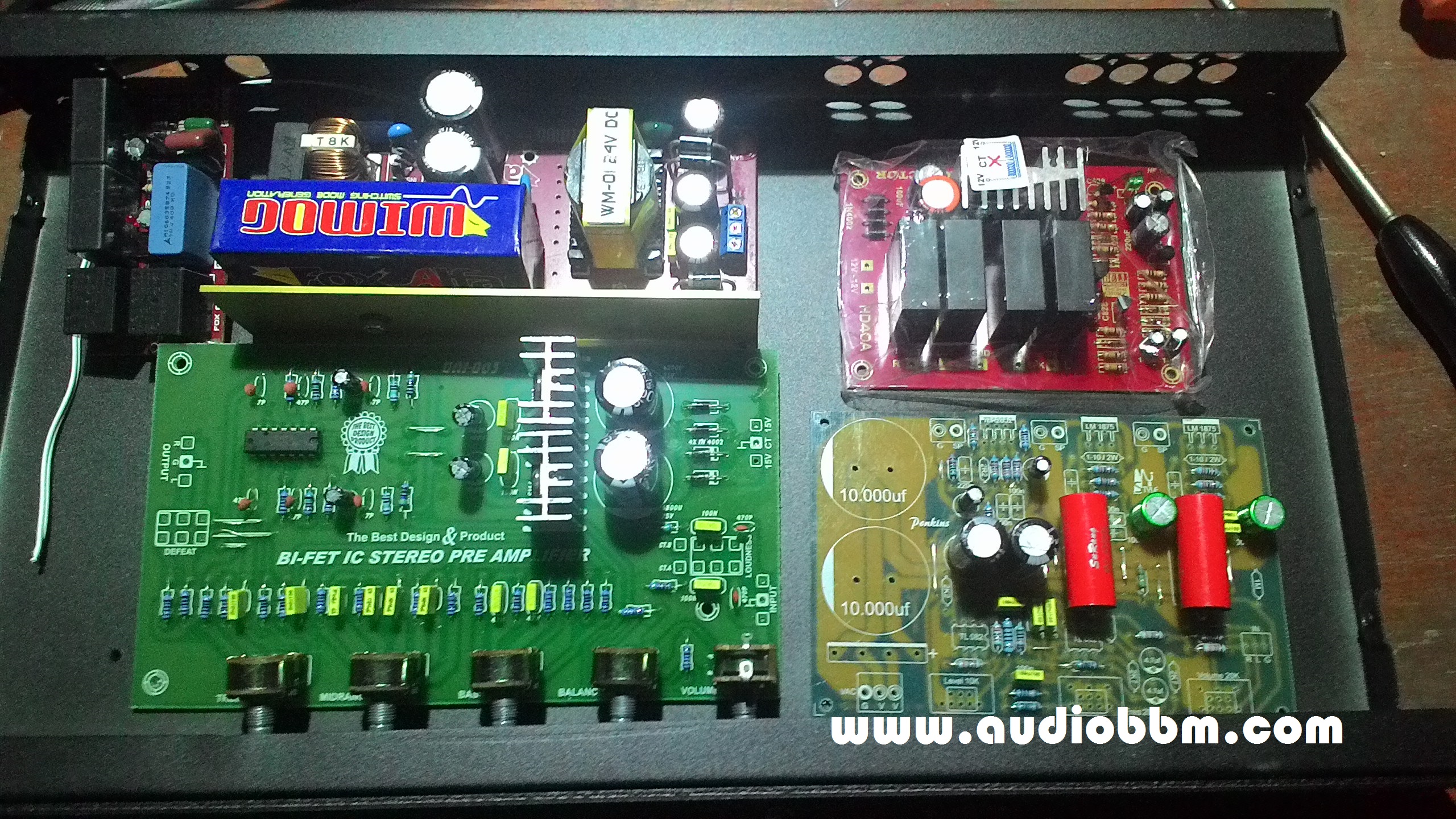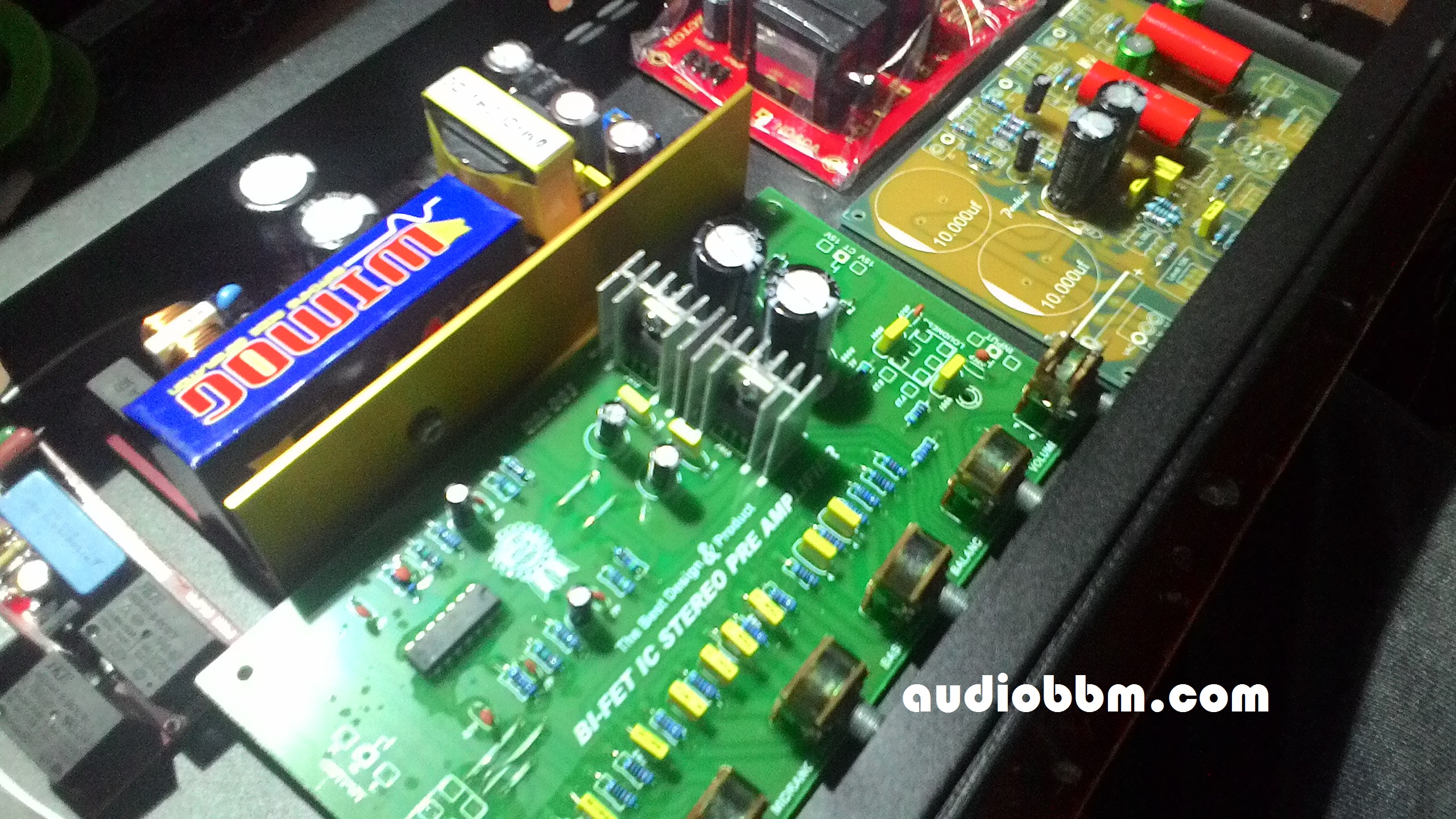 Klo mau nyoba rakit, tone controlnya harus diturunkan gainnya supaya tdk terlalu besar gainnya, cukup 2 kali saja, karena gain dari powernya sdh tinggi. Kebanyakan orang sering komplain dgn tone control pasaran karena noise, dengung dan lain2, tp itu sebenarnya hanya karena gain nya ketinggian, dan tdk menerapkankan single point ground.