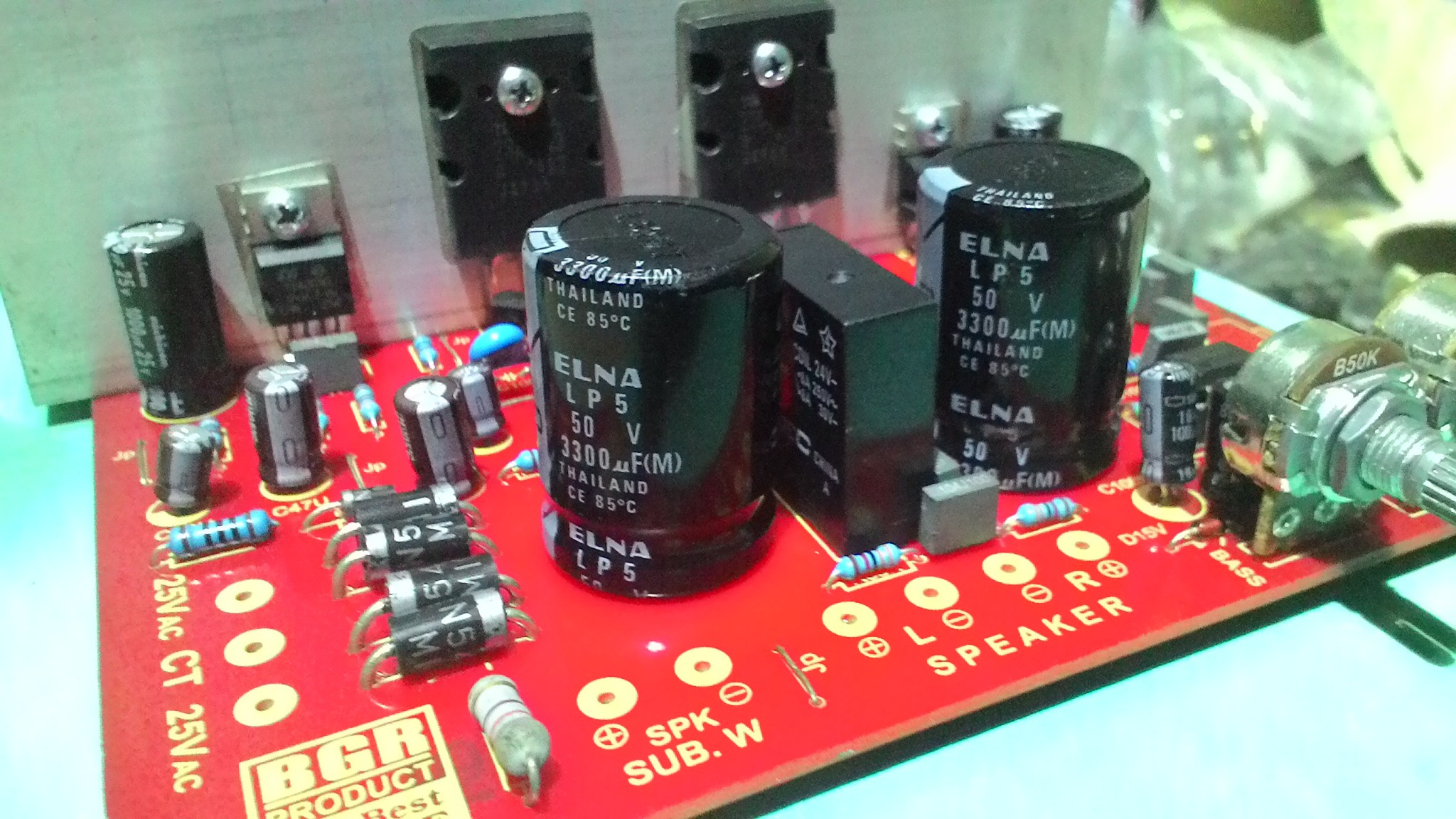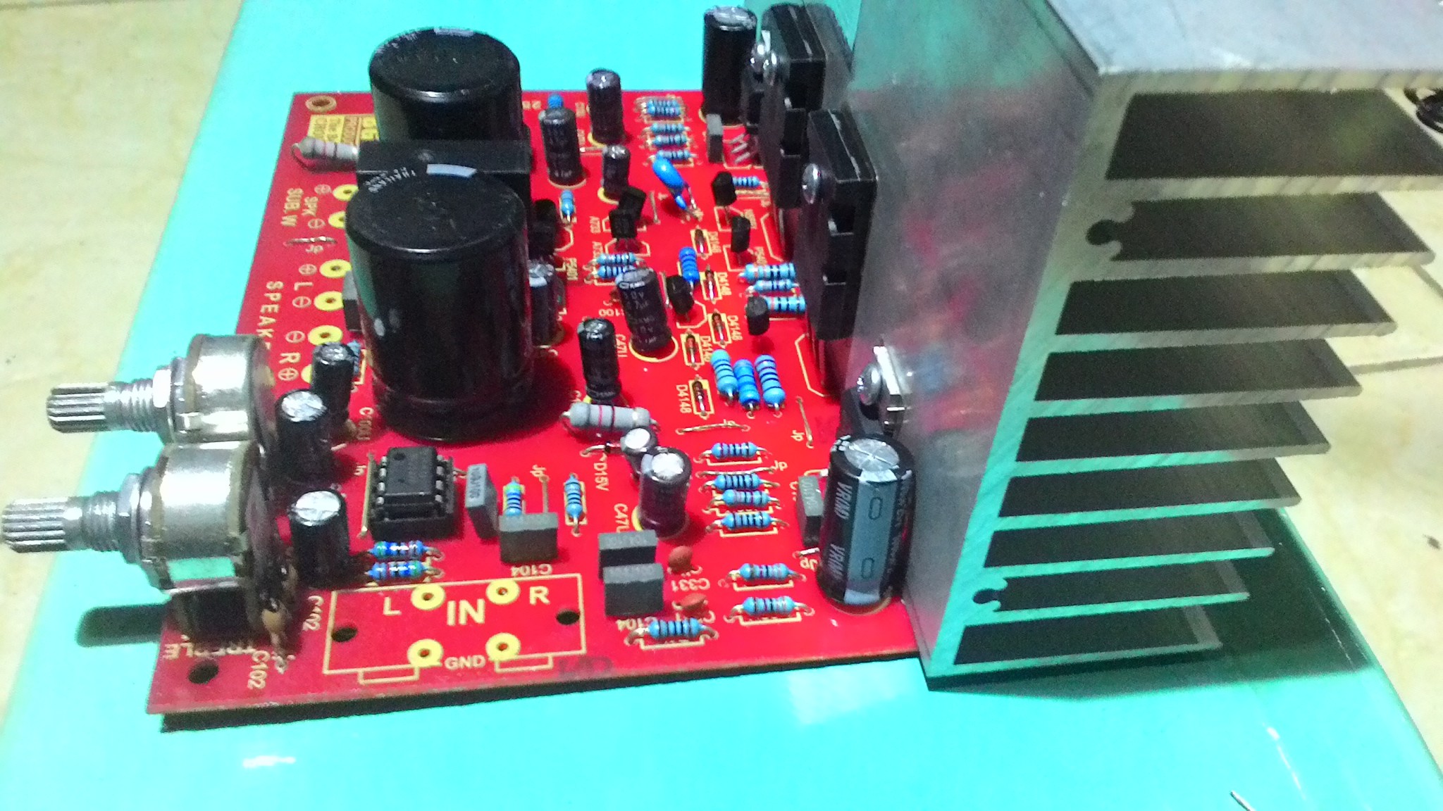 Selain itu kit ini standarnya sudah menggunakan kapasitor MKM dan resitor metal film. Untuk merakit kit ini sampai jadi anda tinggal menambahkan trafo 5A CT25V. Tambahkan juga potensio stereo 50K pada input sebagai master volume (tdk termasuk didlm kit). Gunakan speaker full range 3-6″ 8ohm 20-60Watt untuk speaker satelit dan speaker 8-12″ 8ohm 300W untuk speaker subwoofer. Untuk speaker subwoofer diusahakan menggunakan box yang kokoh dan sesuai untuk subwoofer