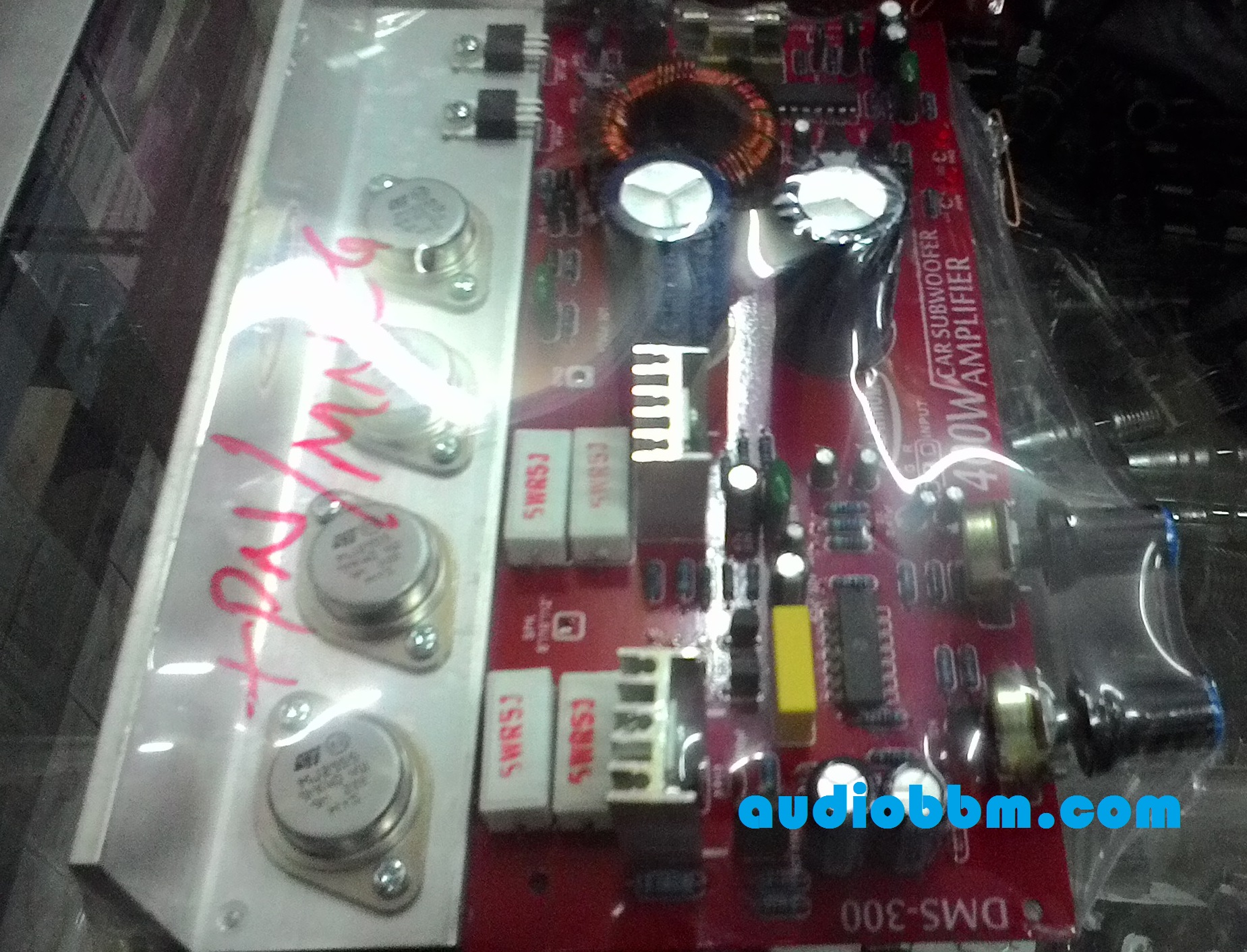 KIT DMS300 adalah kit amplifier subwoofer untuk dipasang pada kendaraan dengan power supply 12V DC. Kit ini cukup powerfull dengan final 4 buah transistor 2N3055/MJ2955 ST original. Didalam satu PCB terdapat PSU inverter, subwoofer filter dengan pengaturan volume dan frekuensi cutoff, serta amplifier OCL built in. Kit ini juga disertai pelat panel depan, sehingga mudah dipasang pada box speaker subwoofer pilihan anda. Untuk memaksimalkan performa, pendingin standar ditempelkan pada pendingin bersirip.
