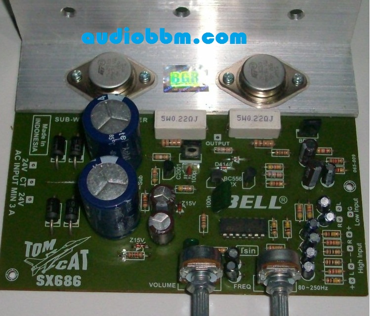 Bell SX686 adalah modul amplifier subwoofer lengkap dengan subwoofer crossover/filter. Memiliki pengaturan volume dan frekuensi cut off atau nada bass yang diinginkan. Masukan bisa dari output pre-amp atau keluaran speaker stereo biasa. Silahkan disesuaikan pilihan masukan low input atau high input. Gunakan trafo kualitas baik 24Ct 5A untuk kualitas suara bass yang baik. Speaker dapat menggunakan ACR PRO Woofer 12″ 300Watt dan box yang baik.