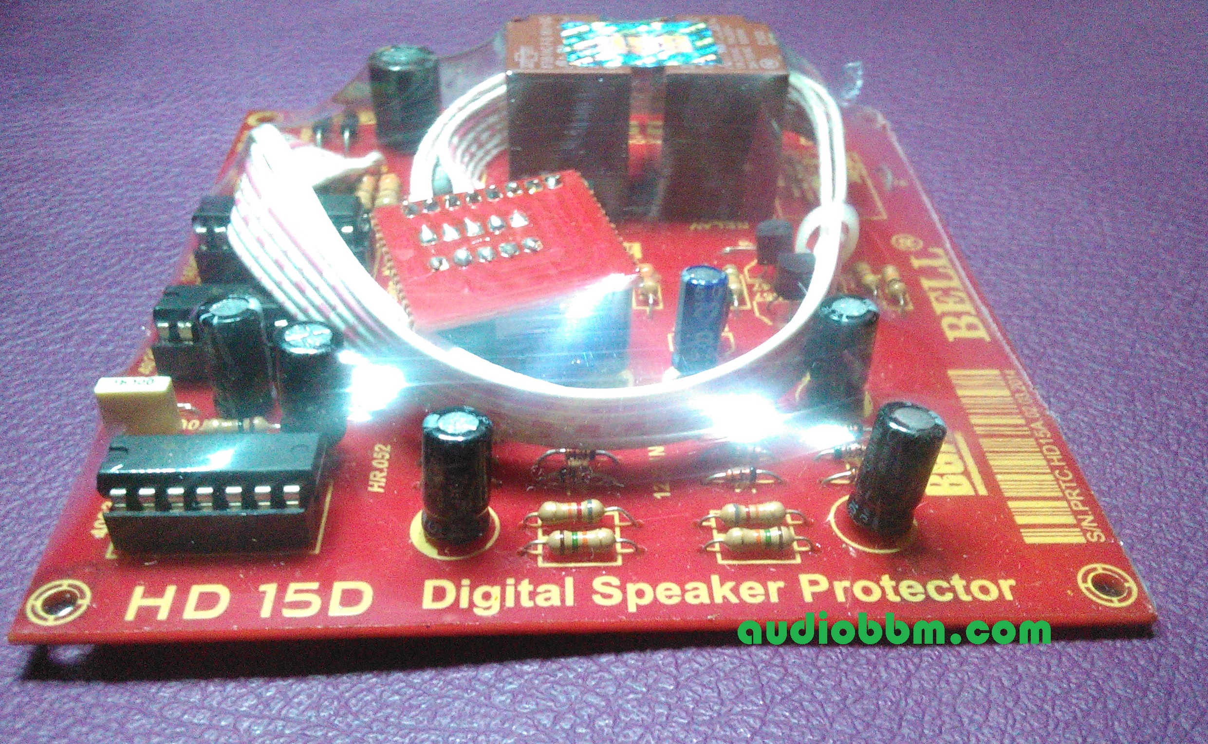 Speaker Protector dengan fungsi delay yang menghilangkan bunyi thump(jeduk) pada saat amplifier pertama kali dihidupkan dan memiliki proteksi terhadap tegangan DC pada output amplifier sehingga speaker tetap aman jika terjadi masalah pada amplifier. Terutama untuk konfigurasi amplifier OCL (output capacitor less) speaker protector sangat penting untuk menjaga agar tegangan DC tidak langsung membakar coil speaker, jika amplifier anda mengalami kerusakan dikarenakan transistor final yang putus atau short.