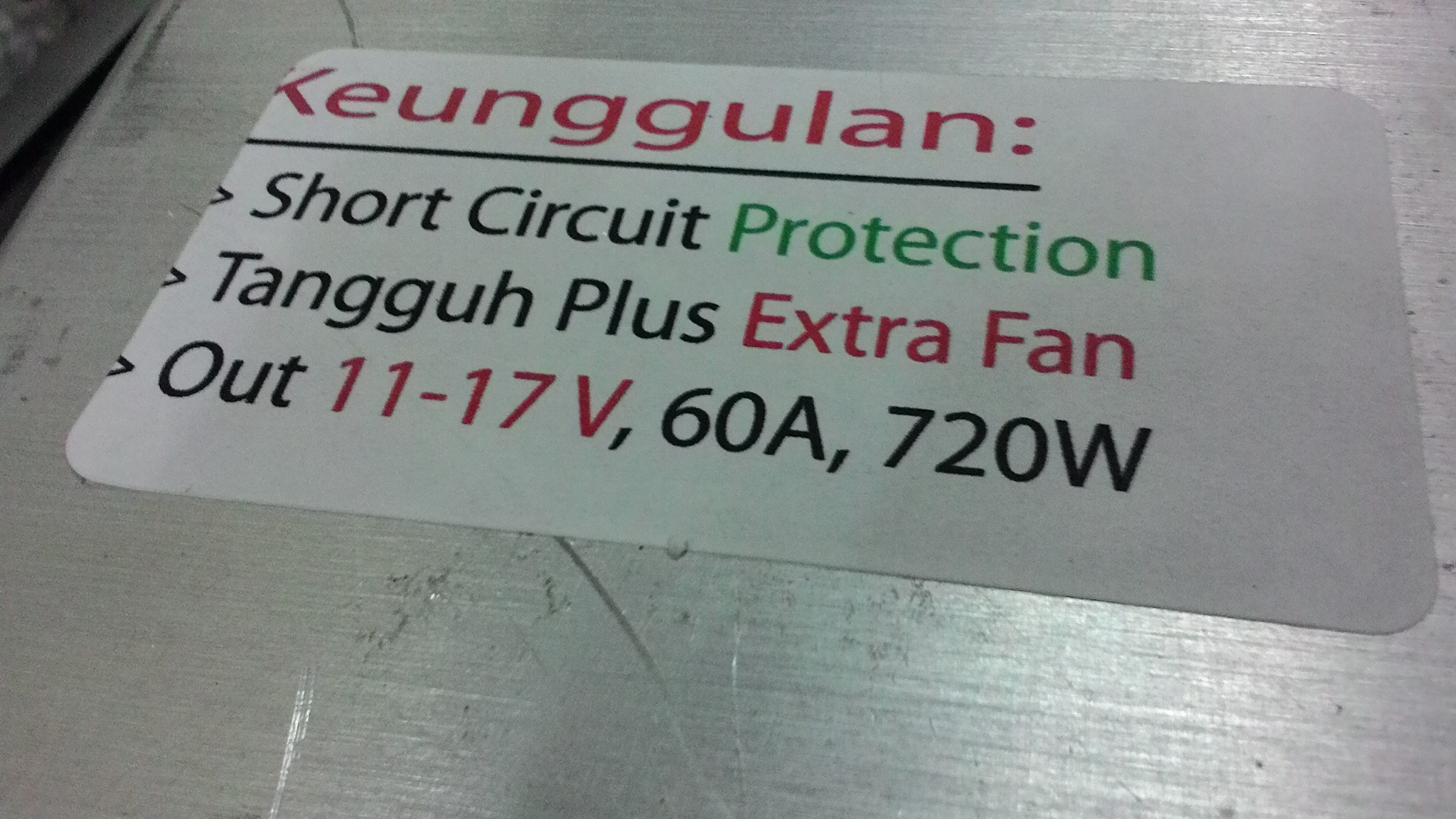 Swithing PSU ini dapat di adjust 12-17V dengan arus maksimal 60A atau daya maksimal 720Watt. Cocok untuk perangkat yang membutuhkan arus besar seperti perangkat Telekomunikasi, motor listrik DC, charger batterai dan lain-lain.